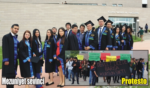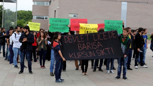 Diyarbakır Lice’ye yaşanan olaylarda iki kişinin hayatını kaybetmesi sonrası AİBÜ’de protesto gösterisi yapıldı. “Devlet Lice’de barışa kurşun sıktı” yazılı dev pankartla yürüyüş yapan grup, Aktivite Merkezi önünde açıklamalarda bulundu. Ellerinde “Kalekollar insan hayatına tehdittir”, “Soma’da yanan yürekler Şırnak’ta kurudu” ve “Lice katliamını unutma” gibi dövizler taşıyan öğrenci grubu, kafalarına da ‘Lice’ yazılı bandajlar taktı. Bir grup öğrencinin Lice olaylarını protesto ettiği kampuste başka bir öğrenci grubu ise mezuniyeti kutladı. Öğrenciler müzik eşliğinde eğlenerek hatıra fotoğrafı çektirdi.