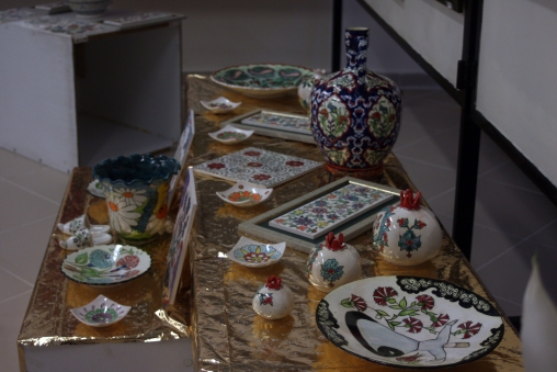 Bayan kursiyerlerin, eğitimini aldıkları el sanatı teknikleri ile oluşturdukları çini ve resim sergisi açıldı.