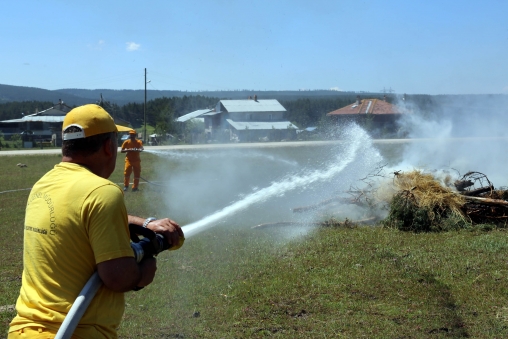 Tatbikatta katılan Bolu ve Düzce'ye bağlı ekipler, ekipman kontrollerinin ardından yakılan ateşe farklı söndürme metotları kullanarak müdahale etti.