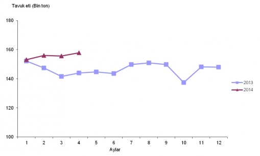 TÜİK tarafından oluşturulan istatistiki bilgilere göre, rakamlar şöyle: Mevsim ve takvim etkisinden arındırılmış seriye göre; kesilen tavuk sayısı bir önceki aya göre yüzde 0,5 artarken tavuk eti üretimi ise yüzde 1,4 arttı.