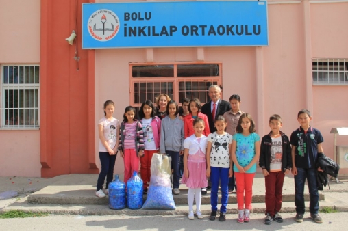 Engellilere tekerlekli sandalye temin etmek için başlatılan “Mavi Kapak Toplama Kampanyası”’na bir destek de İnkılap Ortaokulu’ndan geldi. Öğrencilerin Ekim ayından bu yana okulda biriktirdikleri yaklaşık on bine yakın mavi kapağı Bolu Belediyesi’ne teslim edildi. Teslim törenine katılan Bolu Belediye Başkan Yardımcısı Emine Davarcıoğlu, öğrencilere topladıkları kapakların nasıl değerlendirileceği konusunda kısa bilgilendirme yaparak, kampanyayı başlatan Müdür Yardımcısı Halil Burak Akkulak ve Okul Müdürü Mustafa Öztürk’e katkılarından dolayı teşekkür etti.