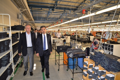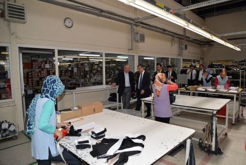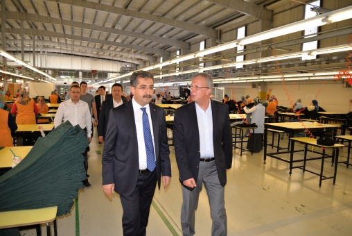 Vali Zahteroğulları ve beraberindekiler, Yönetim Kurulu Başkanı Mesut Toprak’tan detaylı bilgiler aldılar. Toprak, kapasiteleri, çalıştıkları şirket ve firmalar, işçi sayıları gibi bir çok konu hakkında detaylı bilgiler aktardı. Yaklaşık bin kişinin istihdam edildiği fabrikada %80 çalışanın bayan olduğu öğrenilirken, Vali Zahteroğulları işçilerle de sohbet ettikten sonra fabrikadan ayrıldı.