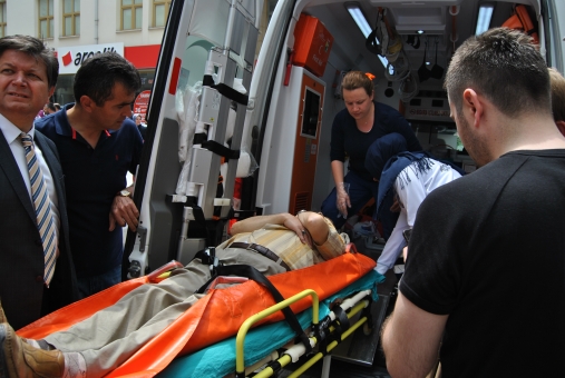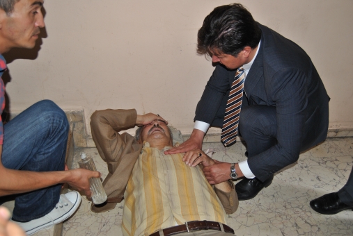 Törenin il başkanlığı binası önünde yapılması yaşlı vatandaşları olumsuz etkiledi. Tıklım tıklım kalabalık arasında 65 yaşında olduğu öğrenilen Necdet Eriş isimli bir vatandaş, rahatsızlanınca tören alanından uzaklaştı. Yaşlı vatandaş Ak Parti İl Başkanlığı binası girişinde yere yığıldı. Durumu fark eden İka, tören protokol alanında hızla ayrılarak, yaşlı adamın yanına ulaştı. Yaşlı vatandaşın yere yığıldığı esnada başını duvara vurduğunu fak eden İka, yaşlı adama müdahalede bulundu.