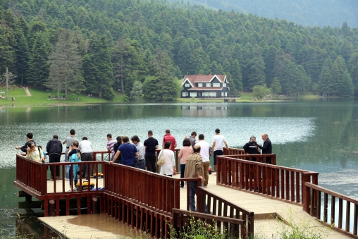 Tatilciler, okulların tatil olmasının ardından Bolu'ya 13 kilometre uzaklıkta bulunan Gölcük Tabiat Parkı'na akın etti.
