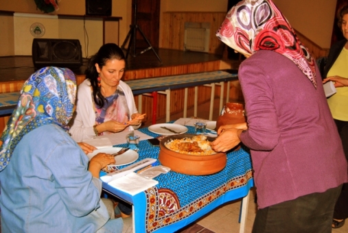 Mudurnu Düğün Salonu’nda düzenlenen yemek yarışmasında Mudurnulu hanımlar çeşit çeşit yemeklerle önce gözleri doyurdu. Envai çeşit yemeklerle hünerlerini sergileyen hanımlar, birincilik için yarıştılar.