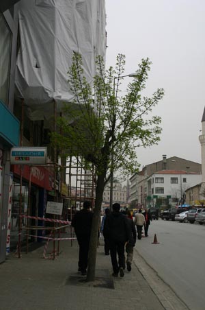 Bolu?nun en işlek caddesi üzerinde özellikle de havaların ısınmasıyla vatandaşların kendini şehir merkezine attığı bir dönemde kurulan inşaat iskelesi vatandaşlar için tehlike yaratıyor. Özellikle pasaj içindeki dükkanlara ulaşmak isteyen vatandaşlar bu iskelenin altından geçmek zorunda kalıyorlar. Pasaj içinde öğrenci ve halkın büyük ilgi gösterdiği bir fast-food salonunun bulunması da vatandaşların canlarını tehlikeye atarak iskelenin altından geçmesine neden oluyor. Sıkıntı bununla da bitmiyor. İskelenin kaldırımın büyük bir bölümünü işgal etmesi nedeniyle vatandaşlar çoğunlukla araçların yoğun olarak geçtiği caddeye sarkıyorlar. Bu da her bir trafik kazası meydan gelme riskini ortaya çıkarıyor. Bazı vatandaşlar ise sıkıntının farkına bile varmadan iskelenin altından rahatlıkla geçip yoluna devam ediyorlar.