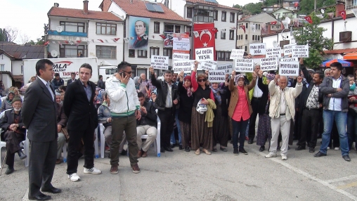 Yeniceşıhlar köylüleri, konuşmalarının sonuna kadar ellerinde pankartlar ile alan kenarında bekledi. Köylüler zaman zaman seslerini duyurmak için alkış tuttular.