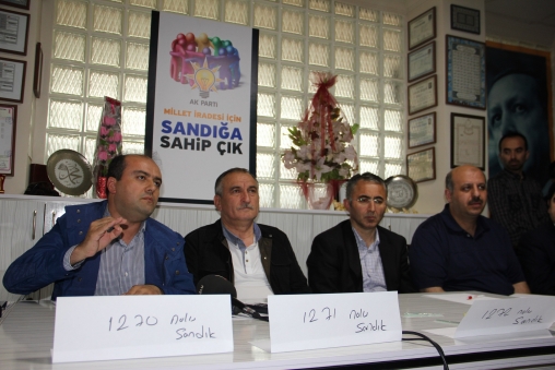 Ak Parti Bolu İl Başkan Yüksel Coşkunyürek, Ak Parti Bolu eski Milletvekili olan Gümrük ve Ticaret Bakan Yardımcısı Fatih Metin, Milletvekili Ali Ercoşkun, Bolu Belediye Başkanı Alaaddin Yılmaz, İl Genel Meclisi Başkanı Yaşar Yüceer, Kadın Kolları İl Başkanı Arzu Aydın, Gençlik Kolları İl Başkanı Taha Furkan Sönmezel ve Merkez İlçe Başkanı Adil Esen, Sümer Mahallesi, Mudurnu Caddesi üzerinde belirlenen noktaya gelerek, buradaki “Sandık Yönetim Kurulu” üyeleri ile bir araya geldi.
