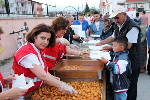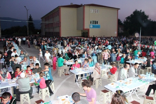 Kızılay Şubesi, Bolu halkının ve gönüllülerin de desteği ile Çıkınlar Mahallesi’nde 60.Yıl İlkokulu bahçesinde yaklaşık 3 bin kişiye iftar yemeği verdi. İftar yemeğine Vali Yardımcıları Ayhan Kartlı ve Nurullah Ertaş, Belediye Başkanı Alaaddin Yılmaz, Belediye Başkan Yardımcısı ve Kızılay Şube Başkanı Hüseyin İka, Bolu Belediyesi Meclis Üyeleri, BTSO Başkanı Türker Ateş mahalle sakinleri ve davetliler katıldı. Belediye Başkanı Alaaddin Yılmaz ve Belediye Başkan Yardımcısı ve Kızılay Şube Başkanı Hüseyin İka, Çıkınlar Mahallesi sakinlerinin doldurdukları masaları tek tek dolaşarak vatandaşlara hayırlı Ramazanlar dileklerinde bulundu. İftar yemeğine çok sayıda kişinin katıldığı izlendi.