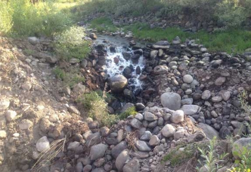Yapılan çalışmayla geçici yol verilen dere, dün obruğun genişlemesiyle yine tamamen obruğa akmaya başladığı öğrenildi.