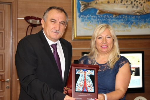 Konuşmaların ardından ise Denizbank Bolu Şube Müdürü Nilgün Özerdoğan tarafından Başkan Yılmaz’a tebrik plaketi takdim edildi.