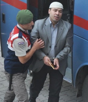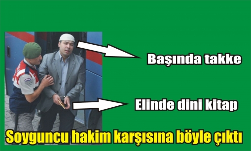 Bolu ve Bartın ve Zonguldak’ta akaryakıt istasyonlarından maskeyle silahlı soygun yaptıkları iddia edilen üç sanıktan Mustafa Ö., cezaevi aracından başında takke, elinde Kur’an ile indi.