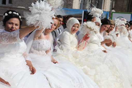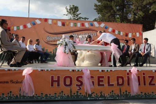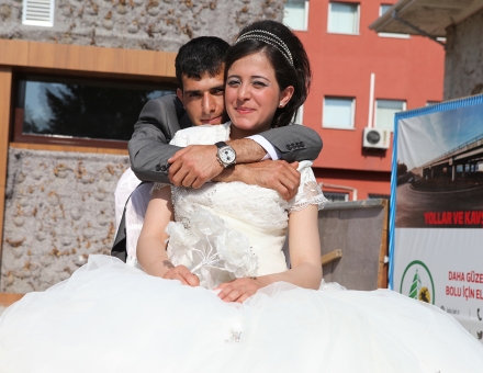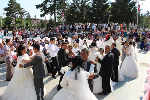 Bolu’da ekonomik durumu yerinde olmayan 10 çifte Bolu Belediyesi tarafından toplu nikah töreni düzenlendi. Kent Meydanı’nda yapılan ve bu yıl üçüncüsü düzenlenen nikah törenine Bolu Valisi Ahmet Zahteroğulları'nın eşi Mahire Zahteroğulları, Bolu Belediye Başkan Yardımcıları Hüseyin İka ve Emine Davarcıoğlu ile daire müdürleri katıldı.