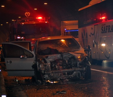 Edinilen bilgiye göre, İstanbul’dan Ankara istikametine giden Mücahit Tuncer yönetimindeki 06 DL 6648 plakalı otomobil tünelin içinde motor kısmından alev aldı. Sürücü Tuncer ile eşi ve kızı panik içinde araçtan indiler. Olay yerine gelen tünel itfaiyesi yangına kısa sürede müdahale etti.