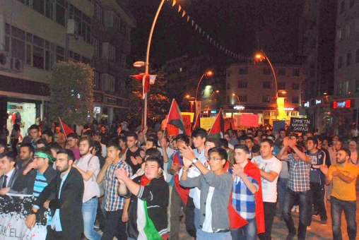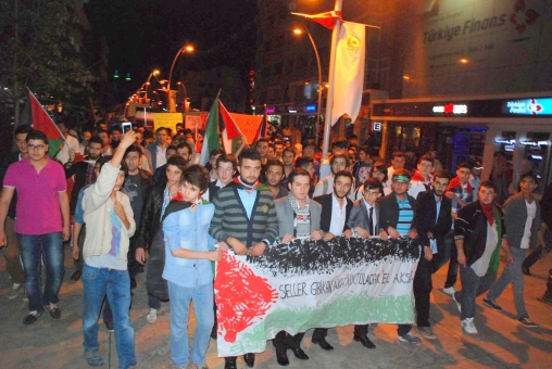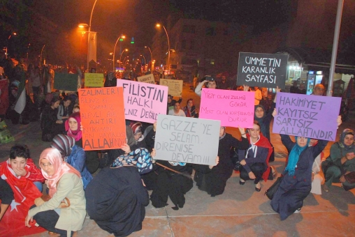 Bankalar Meydanı’nda saat 21:00’da toplanan grup slogan atmaya başladı. Ellerinde taşıdıkları meşalelerle “Allahu ekber” diyerek koşan gençlik kolları üyeleri kendilerini yerlere atarak Gazze'de yaşanan ölümleri canlandırdı. “Müslüman uyuma kardeşine sahip çık” sloganları atarak yürüyüşe geçen grubun yürüyüşü Bolu Valiliği binası önünde son buldu. Vatandaşlar yürüyüş yapan grubu korna ve alkışlarla destek verdiler.
