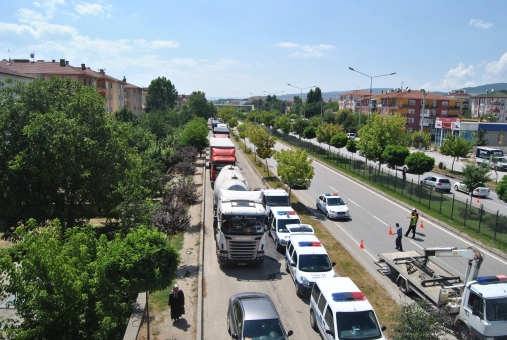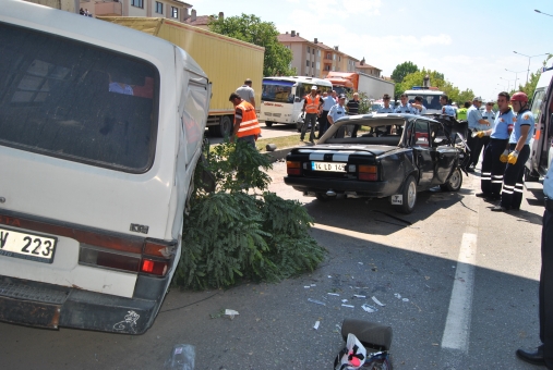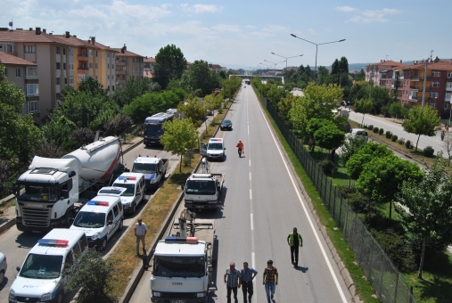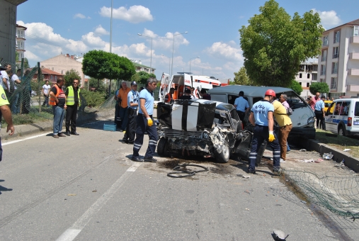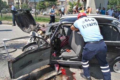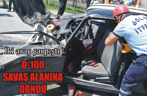 D-100 Karayolu’nda Ankara-İstanbul istikametinde seyreden 14 DV 223 plakalı minibüs, şoförünün hatalı solama yapması üzerine refüje çıkarak karşı yöne fırladı. Minibüs burada İstanbul-Ankara istikametinde seyreden 14 LD 145 plakalı otomobil ile kafa kafaya çarpıştı. Çarpmanın etkisiyle minibüs emniyet şeridini ayıran refüje çıkarak burabildi. Otomobil ise ters döndü. Kazada otomobilin burnunun tamamen yok olduğu görüldü.