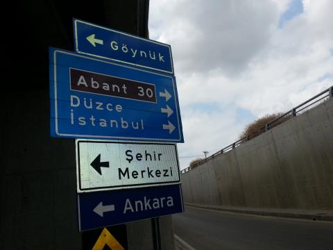 Türkiye’nin önemli geçiş güzergahlarından Bolu’da D-100 Karayolu üzerindeki trafik levhaları dikkat çekici bir ayrıntıyı gözler önüne serdi.