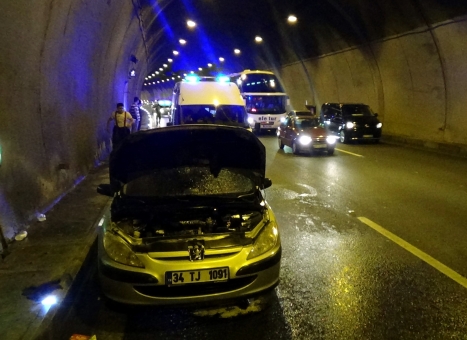 Bolu Dağı Tüneli’nde alev alan otomobil itfaiye ekiplerinin müdahalesiyle söndürüldü.