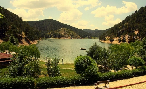 Göynük ilçesinde bulunan Sünnet Gölü'ne hafta sonu tatili için gelen vatandaşlar, yürüyüş yaparak tatilin keyfini çıkarıyor.