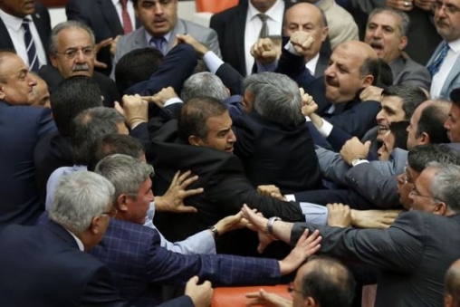 MHP'nin IŞİD ile ilgili grup önerisinin oylaması sırasında Meclis'te yumruklar konuştu. Oylama sırasında MHP'li Ali Uzunırmak, Genel Kurulu'nda olmamalarına rağmen bazı AK Partili vekillerin oy kullandığını iddia ederek AK Partilileri sahtekarlıkla suçladı. Bunun üzerine AK Parti Malatya Milletvekili Mustafa Şahin, Uzunırmak'ın üzerine yürüdü. Uzunırmak ile Şahin arasında tekme tokat kavga yaşandı. Kavga sırasında Uzunırmak yere düştü, Şahin'in ise kaşı açıldı.