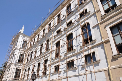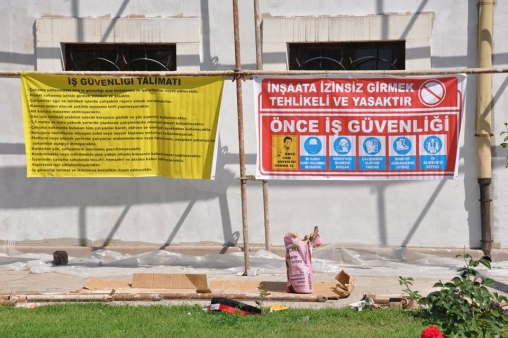 Binanın dış kısmında, iskele kurularak bakım ve boyama çalışması başlatılırken, iç kısmında ise binanın eskiyen kısımları aslına uygun olarak yenilenmeye başladı.