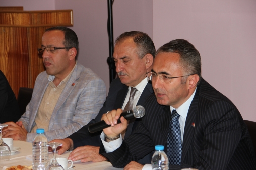 Toplantıda ilk konuşmayı AK Parti İl Başkanı Yüksel Coşkunyürek yaptı. 10 Ağustos’ta tarihi bir gün yaşanacağını belirten Coşkunyürek, “Türk tarihinde ilk defa millet, kendi cumhurbaşkanını seçecek. Bu demokrasi tarihimiz açısından bir ilk olacak. Biz inanıyoruz ki milli irade sandıkta tecelli edecek ve bu ülkeyi 2023’lere, 2053 ve 2071’lere taşıyacak olan Cumhurbaşkanı halkın iradesiyle inşallah seçilecek. Bizler ve yerel yöneticiler olarak, hepimiz bu ülkeyi aldığı noktadan daha yukarılara götüren, dünyada alt sıralarda yer alırken, dünyanın 16. büyük ekonomisi haline getiren, Türk insanına ilkleri yaşatan ve yerel yönetimler manasında da yerel yönetimlerin mimarı olan Sayın Başbakanımız Recep Tayyip Erdoğan’ın her zaman yanında olduk ve yanında olmaya devam edeceğiz. Onun cumhurbaşkanı olması için ve bu ülkeye daha iyi hizmet edebilmesi için elimizden geleni yapacağımızı buradan duyuruyoruz” diye konuştu.