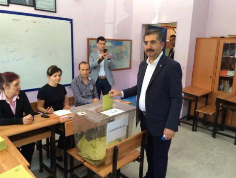 MHP İl Başkanı Mehmet Aydın ise, Alpagut İlköğretim Okulu’ndaki 1016 numaralı sandıkta oy kullandı. Eşi ile birlikte sandık başına giden Aydın, çıkışta, “Sonuç ülkemiz için hayırlı uğurlu olsun” dedi.