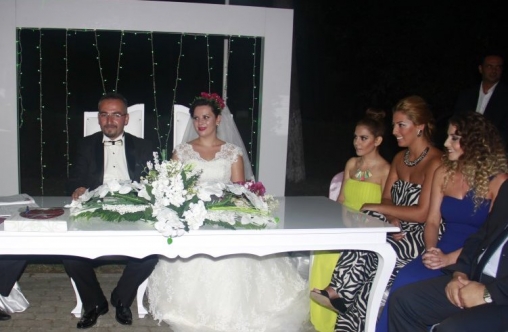 Bolu’da İzzet Baysal Otelcilik ve Turizm Meslek Lisesi Uygulama Oteli’nin bahçesinde gerçekleşen düğün törenine, kız ve erkek taraflarının yanı sıra Bolu protokolü ve gelin ile damadın gazeteci arkadaşları da genç çifti bu mutlu günlerinde yalnız bırakmadılar.