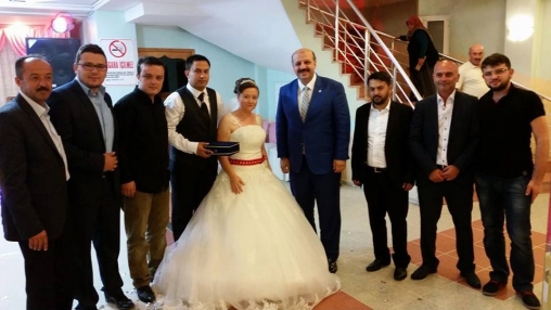 Geçtiğimiz haftalarda Belediye Nikah Salonu’nda kıyılan nikahla hayatlarını birleştiren Esra- Zafer Göder çiftinin hafta sonu düğün töreni gerçekleşti. Grand Düğün Salonu’nda yapılan düğüne Göder çiftinin aileleri, akrabaları, çok sayıda arkadaşı ve meslektaşlarının yanı sıra, Ak Parti Bolu Milletvekili Ali Ercoşkun ve Belediye Başkanı Alaaddin Yılmaz da katıldı. Başkan Yılmaz kısa süreli de olsa katıldığı düğün merasiminde Sebenli hemşerisi damat Zafer Göder’le karşılıklı oyun oynadı.