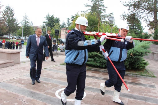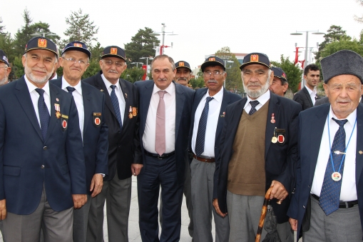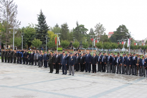 Anıtpark’ta düzenlenen çelenk töreninden sonra protokol üyeleri Muharip Gaziler Derneği’ni ziyaret etti.