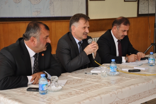 Ardından İl Genel Meclis Başkanı Yaşar Yüceer söz alarak muhtarlara seslendi. “Hepimiz bir aileyiz ve hepimizin hedefi Bolu’ya hizmet etmek” diyerek konuşmasına başlayan Yüceer, “Başka bir amacımız yok. Taleplerinizi, isteklerinizi saygıyla karşılıyoruz. Belki de ilk kez böyle bir toplantı yapılıyor. Hepimiz hizmet için varız. Nasıl daha iyi hizmet edebiliriz? Köylümüzün milletimizin sorunlarını nasıl daha iyi çözebiliriz? Diye düşünmeliyiz. Ancak hepimiz ayağımızı yorganına göre uzatmalıyız. Özel İdare de bu şekilde. Burasının bir bütçesi, bir geliri, bir gideri var. Problemi çözdükçe birlikte mutlu oluyoruz. Gönül ister ki hemen bütün problemleri çözelim ama bu mümkün değil. Tartışacağız, istişare edeceğiz, karar vereceğiz ama attığımız adımın sağlam ve kalıcı olmasına dikkat edeceğiz. Bunu birlikte yapacağız. Bolu Merkezde 112 köyümüz var. Bu köylerin öncelikle tüm yollarını sıcak asfalt yapalım isteriz ama böyle bir bütçe mümkün değil. 2004 yılından bugüne kadar yaklaşık 10 yıldır sizlerin seçtiği arkadaşlarımız ve özel idaremizdeki arkadaşlarla köylerin sıkıntılarını çözmeye çalışıyoruz. Elbette hatalarımız, eksiklerimiz vardır. Her şeyi bitiremedik, bütün ihtiyaçlarımızı gideremedik ama bütün köylerimize hizmet götürdük. Bundan sonraki süreç içinde bütçemizi en iyi şekilde kullanarak, kalıcı ve sağlam yatırımlar yaparak önümüze bakmamız lazım. Özel İdare ve Köylere Hizmet Götürme Birliği ile birlikte iyi işler yapmaya gayret ediyoruz. Bizler hizmet noktasında her zaman yanınızdayız. Özel İdarenin bütün imkanlarını kullanarak, sonuna kadar sizlere hizmet etmeye çalışıyoruz. Göreve geldiğimizin 6’ıncı ayı içindeyiz. Bu yaz gerçekten verimli ve kalıcı çalışmalar yaptığımızı düşünüyorum. Yeterli mi? Tabiî ki değil. Çalışmalarımız devam edecek” diye konuştu.