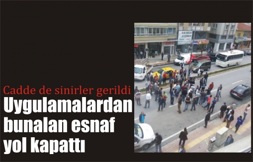 Buradaki caddeyi trafiğe kapatan esnaf, araçlarının park ettikleri yerden zabıta ekiplerince hiçbir gerekçe gösterilmeden çekildiğini öne sürerek, buna tepki gösterdi.