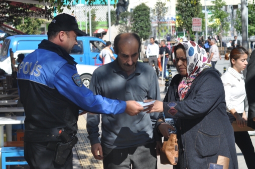 Broşürde ayrıca, “ATM’lerden para çekerken tanımadığınız kişilerin yardım taleplerini kabul etmeyin, şifrelerinizi kesinlikle vermeyin. Banka işlemleriniz sırasında banka gişe görevlileri dışında yardım etmek isteyenlere itibar etmeyin. Unutmayın ki, hiçbir banka e-mail, SMS ya da sosyal paylaşım siteleri üzerinden kimlik ve banka kart bilgilerinizi istemez. Bu gibi durumlarda en yakın polis merkezine müracaat ediniz veya 155 Polis İmdat ihbar hattını arayınız” uyarılarında bulunuldu.