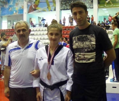 Kırıkkale’deki şampiyonluğun ardından, bu kez İzmir’de gerçekleşen Ümitler Türkiye Taekwondo şampiyonasında sahne alan Ülkü Yüceer yine göğsümüzü kabarttı. 57 kiloda yarışan sporcumuz Ülkü Yüceer başarılarına bir yenisini daha ekledi. Yüceer, antrenörü Derviş Erdoğan ve Kulüp Başkanı Erhan Yüceer ile birikte Türkiye 3.lüğüne imza attı.