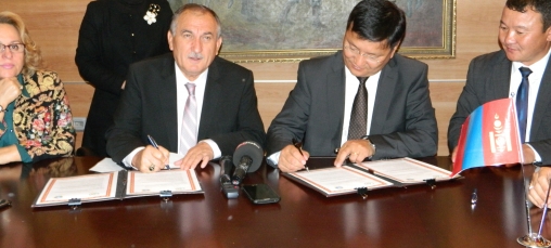 Bolu Belediye Başkanı Alaaddin Yılmaz’ın makamında Karakurum Belediye Başkanı Lamzav Enkhbat’ın da katılımıyla gerçekleştirilen ve karşılıklı imzalanan protokol ile Bolu ve Karakurum kardeş şehir oldu.