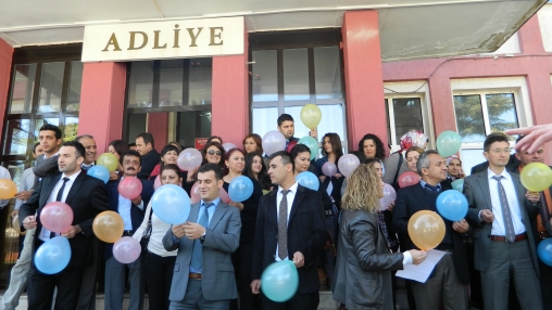 Adalet Bakanının Adalet çalışanlarına sahip çıkmasını isteyen Bolu Adliyesi çalışanlarından Kader Acar, Türk Bürosen Bolu Şube Başkanlığı adına açıklama yaptı. Adalet çalışanlarının büyük bir iş yükü içersinde olduğunu söyleyen Acar, “Adalet Bakanı Sayın Bekir Bozdağ’ın 17 Eylül tarihinde yaptığı açıklama ile Hakimler Savcılar, Danıştay, Yargıtay üyeleri, Adalet Akademisi çalışanları ve mahkemelerde çalışan kalem personeli dahil bütün yargı mensuplarına zam yapılacağı açıklaması ile oldukça sevinmiştik. Ancak TBMM’ne gelen yasa teklifinde sadece Hakim ve Savcıların olduğunu üzülerek öğrendik. Bunun üzerine Başbakan ve Adalet Bakanına mektup gönderdik. Başbakan ve Adalet Bakanına gönderilmek üzere dilekçe kampanyaları düzenledik. Adaletin asıl yükünü çeken adalet çalışanları unutulmasın istedik. Ağır iş yükü altında çalışanlar yok sayılmasın istedik. Adalet çalışanlarından birinci derecede sorumlu olan Adalet Bakanının adalet çalışanlarına sahip çıkacağına inanıyoruz. Farkına varılması için farkındalık yaratmak için balon patlatma etkinliği düzenledik. Farkımıza varılacağı umuduyla sözlerimizi tamamlamadan önce, cennet vatanımızda meydana gelen üzücü olayların bir an önce son bulmasını ve aklı selimin yurdumuzun her köşesine hakim olmasını temenni ederiz. Bingöl’de meydana gelen menfur saldırıyı şiddetle kınar, aziz şehitlerimize Allah’tan rahmet milletimize baş sağılığı dileriz”