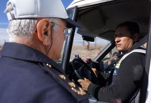 Kontroller esnasında ekipler, durdurulan bir otomobilin arka koltuğunda oturan bir kadın yolcudan emniyet kemerini takmasını istedi. Tüm uğraşlara rağmen emniyet kemerini takamayan kadına bir trafik polisi yardım etti.