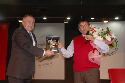 Prof. Dr. Üstün Dökmen’in konuşmasının ardından Belediye Başkanı Alaaddin Yılmaz’ın Dökmen’e plaket takdimi ile konferans sona erdi.