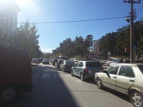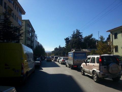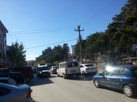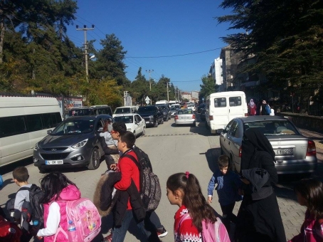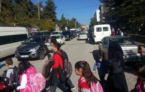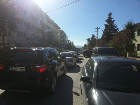 Bolu’da iş çıkışı saatlerinde baş gösteren trafik keşmekeşi tüm hızıyla yaşanmaya devam ediyor. İzzet Baysal Caddesi’nin araç trafiğine kapatılması sonrası araç yoğunluğu yaşanan bölgelerin başında gelen Karamanlı Mahallesi İsmetpaşa Caddesi, Atatürk Bulvarı’nın geçici süreyle ulaşıma kapatılması sonrası, içinden çıkılmaz bir hale geldi. Bölgede bulunan Sakarya İlk ve Orta Okulu’nda öğrenci çıkış saatlerinde bölgede karmaşa had safhaya ulaştı. Çocuklarını okuldan almak isteyen veliler ve öğrenci servislerinin bölgede oluşturdukları yoğunluk trafikte keşmekeş anların yaşanmasına yol açmaya devam ediyor. Yüzlerce metre uzunlukta oluşan araç kuyrukları sürücüleri rahatsız ediyor. Trafikteki sıkışıklıktan bunalan bazı sürücüler caddeyi klakson sesleriyle yankılandırıyor. Yaya güvenliğini de tehlikeye sokan bu trafik keşmekeşi karşısında Bolu İl Emniyet Müdürlüğü Trafik Şube Müdürlüğü ekipleri bölgede öğrencilerin ve diğer yaya geçişlerini kontrollü bir şekilde gerçekleştirmek üzere yoğun mesai harcıyor. Dün saat 14.30 sıralarında bölgeyi gözlemleyen Bolu Express Gazetesi Haber Merkezi bölgedeki trafik yoğunluğunu ve yaya geçişlerindeki yoğun uğraşı objektiflere taşıdı.