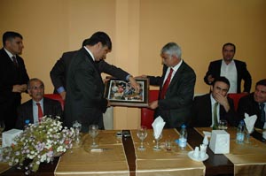 Yemek sonunda Ağrı Gazeteciler Cemiyeti Başkanı Alaettin Aslan tarafından Vali Halil İbrahim Akpınar'a bir tablo hediye edildi.