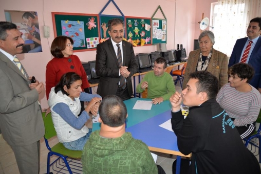 İl Müdürü Necdet Baytok ve Kuruluş Müdürü Faruk Kaçmaz’dan Rehabilitasyon Merkezi hakkında bilgiler alan Vali Zahteroğulları çocuklarla yakından ilgilendi.