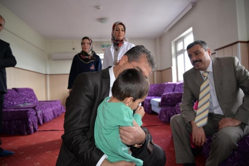 Rehabilitasyon Merkezinde bir sınıfa girerek eğitim gören çocuklarla bir araya gelen Vali Zahteroğulları, burada da çocuklarla yakından ilgilenerek sohbet etti.
