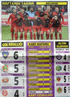 Fanatik Gazetesi’nin PTT 1.Lig’in 7.Haftası ile ilgili değerlendirmesinde Denizlispor’u deplasmanda 3-0 yenerek kötü gidişe ‘dur’ diyen Boluspor haftanın takımı olarak seçildi. Kırmızı-beyazlı takımımızda galibiyette başrolü oynayan ve 2 gole imza koyan tecrübeli defans oyuncusu Serkan Yalçın da haftanın 11’inde kendine yer bulmayı başardı.