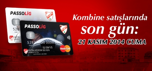 Boluspor Amblemli PASSOLİG Kartı olan ve sezonluk kombine almak isteyen taraftarların ise, en geç 21 Kasım 2014 Cuma gününe kadar BStore Mağazası'ndan sezonluk kombinelerini kartlarına yükletmeleri gerektiği bildirildi..