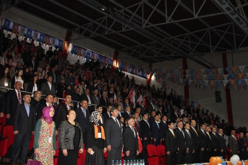 Gümrük ve Ticaret Bakan Yardımcısı Fatih Metin ise: “Dünyadaki bütün ekonomik krizlere rağmen ayakta duran ve aydınlık geleceğe sağlam olarak taşıyan Sayın Kalkınma Bakanımız burada şahsım adına ve sizin adına hoş geldiniz diyorum. Kongreler heyecandır, coşkudur, disiplindir, yenilenmedir vefadır ben bugün burada bunları görüyorum. Vefa dedim çünkü ben divan başkanımızda arz etti bu partinin kuruluşundan bugüne kadar il kurucu üyesiyim. İl başkanı milletvekili bugünde bakan yardımcısı olarak bulunuyorsam bu vefanın ve sizlerin eseridir. Sağıma soluma ve karşıma bakıyorum, 12 yılı görüyorum. Bu duygu ve düşünceler bu heyecana vesile olan başta değerli merkez ilçe başkanı ve yönetimine teşekkür ediyorum” dedi. Kongrenin onur konuğu olan Kalkınma Bakanı Cevdet Yılmaz ise “AK Parti ise milletten aldığı emanete hiçbir zaman ihanet etmedi” dedi. Coşkulu partili gruba seslenen Bakan Yılmaz, Ak Partinin hangi şartlarda ve anlayışla kurulduğunun unutulmaması gerektiğini söyledi. “AK Parti istisnai başarılar sağlamış bir partidir" diyen Yılmaz, “Kuruluşundan daha 1.5 yıl geçmeden tek başına iktidar olabilmiş, dünyada başka bir parti var mıdır bilmiyorum. Bu çok istisnai bir durumdur. AK Parti bunu başaran bir partidir. İktidara gelmek kolay iktidarda kalmak zordur. İktidar yıpratıcı bir süreçtir 12 yıl boyunca hem iktidarda kalmayı başarmış hem de girdiği her seçimden oyunu yükselterek çıkan bir partiden söz ediyoruz. Dünyada eşine az rastlanır bir başarıdır" diye konuştu.
