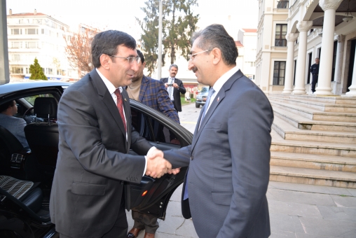 Ziyarette ilk olarak Valilik Şeref Defterini imzalayan Kalkınma Bakanı Sayın Cevdet Yılmaz daha sonra ise Vali Zahteroğulları ile birlikte Valilik Makamına geçti.