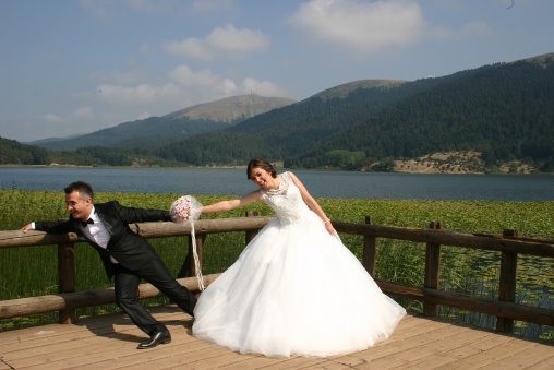 Çiftler, Abant'ın doğal güzellikleri arasında çektirdikleri fotoğraflarla mutluluklarını ölümsüzleştiriyor.