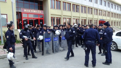 Öte yandan öğrencilerin dün gözaltına alındığı aktivite merkezinin içinde bulunan oturma yerlerine şerit çekilerek öğrencilerin oturma eylemi yapmaları engellendi. Üniversitenin özel güvenlik görevlileri şeritlerin etrafında nöbet tuttular.