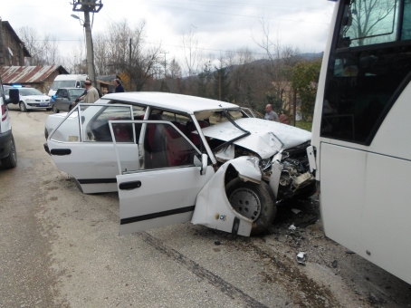 Akyazı istikametinden Mudurnu'ya gelen Mehmet Toprak yönetimindeki 54 D 6837 plakalı midibüs, Çavuşlar köyü yakınlarında Durmuş Uslu idaresindeki 14 AZ 554 plakalı otomobille çarpıştı.