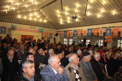 Kürsüye çıkan son konuşmacı olan İl Başkanı Yüksel Coşkunyürek’te Ak Parti’nin 12 yıllık iktidarı boyunca hiçbir zaman millete mahcup olmadıklarının altını çizerek “Milletimize, gönlümüze, bolumuza mahcup olmadık ve Türkiye’yi aldığımız noktadan daha ileriye götürdük. Hayalleri gerçekleştirdik. Bu hepimizin, hepinizin başarısı. Yolumuz uzun. Biz bu yola çıkarken, bu yolun uzun olduğunu bilerek çıktık ve söz verdik milletimize. Dedik ki bu ülkede herkesin yüzü gülmeden, bu ülkeyi dünyanın ilk on ülkesi arasına koymadan, bütün bacaların tüttüğünü görmeden, annelerin ağlaması dinmeden bu yoldan asla dönmeyeceğiz dedik ve dönmeyeceğiz. Bizim sorumluluğumuz sadece Göynük sınırları ile çizili değil. Bizim sorumluluğumuz sadece Bolu sınırları ile çizili değil. Bizim sorumluluğumuz sadece ülke sınırları ile çizili değil. Biz milletin, mazlumların, Kudüs’ün, Bağdat’ın, Saray Bosna’nın umuduyuz. Onun için yükümüz ağır. Omuzlarımızdaki yükün ağırlığının bilincindeyiz ve biz bu bilinçle hareket ediyoruz. Biz hiçbir zaman ‘ben’ demedik ‘biz’ dedik. Ben olmazsam hiçbir şey olmaz demedik ‘biz’ dedik, millet dedik. Bizim için davamız, ülkemiz vardır.” diye konuştu.